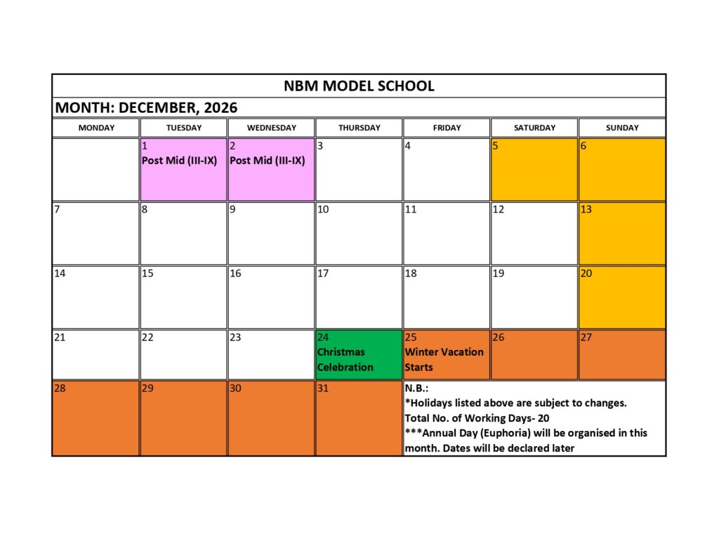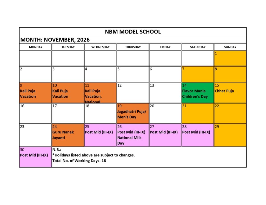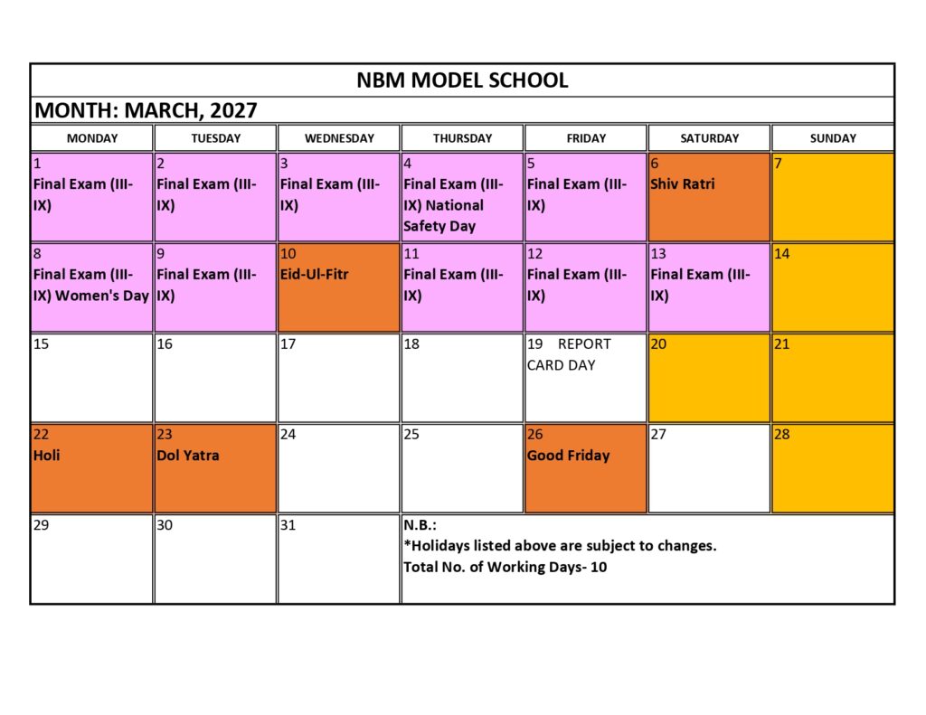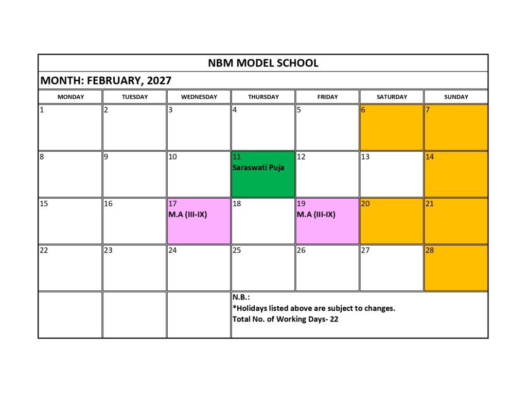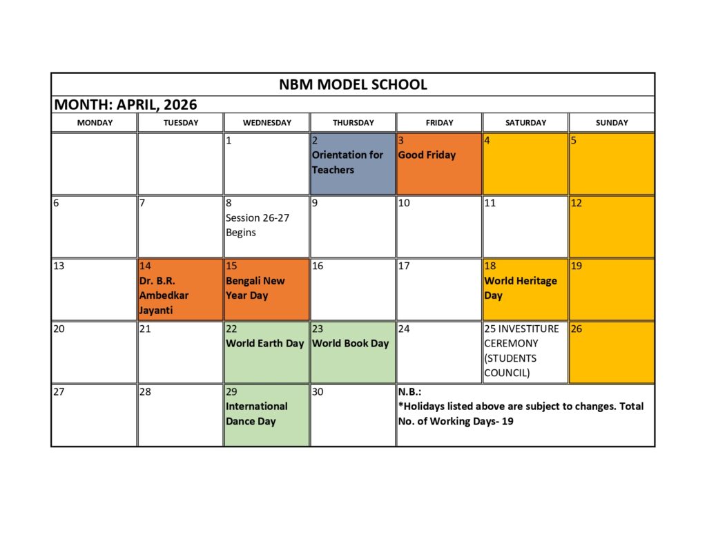 ACADEMIC CALENDAR FOR THE SESSION- 2026-2027