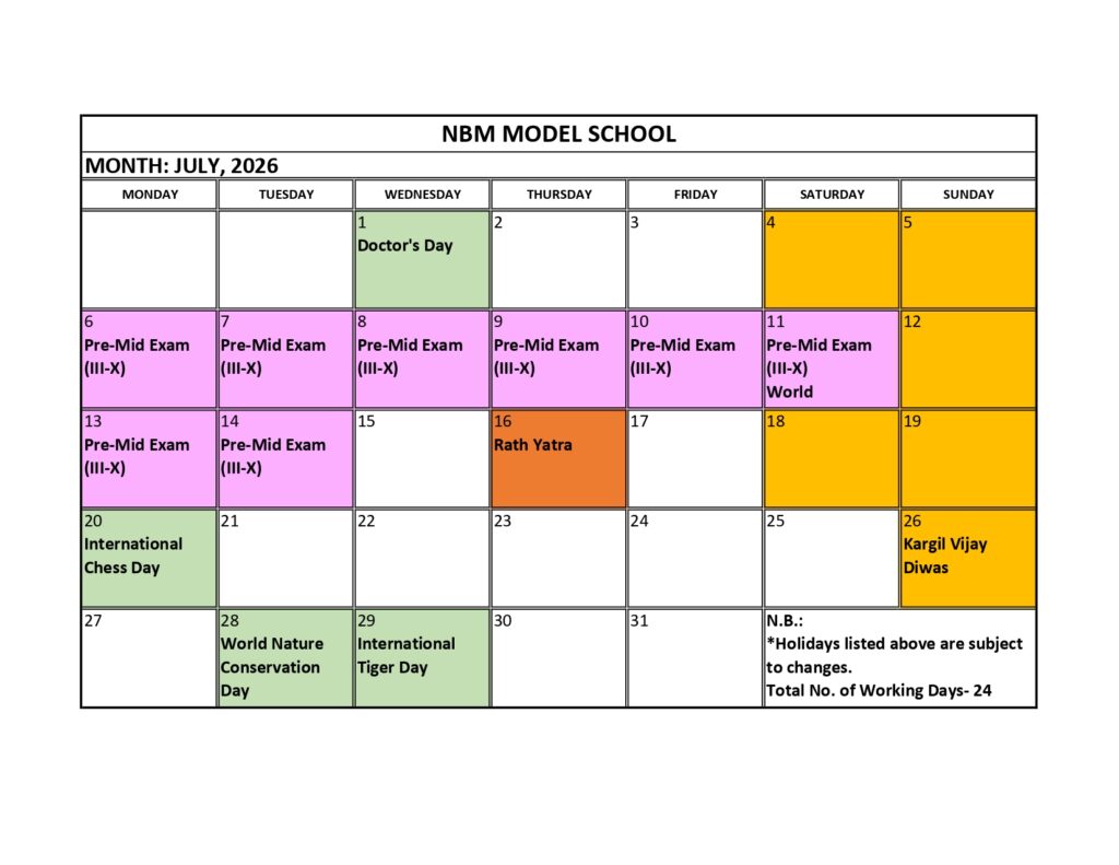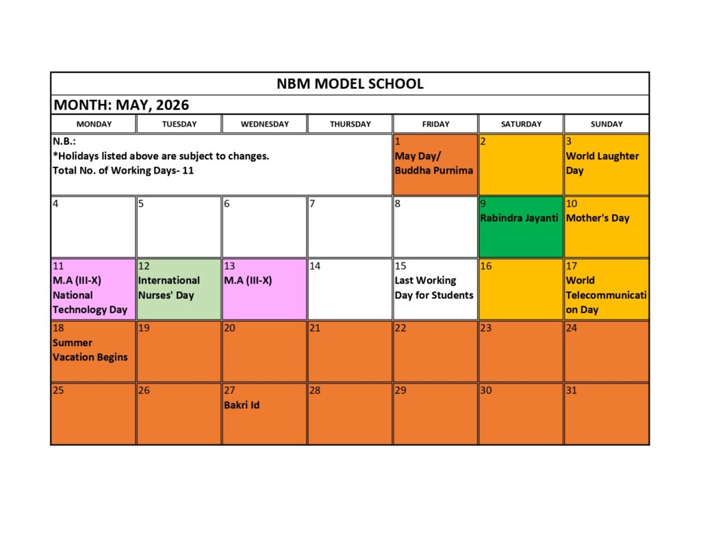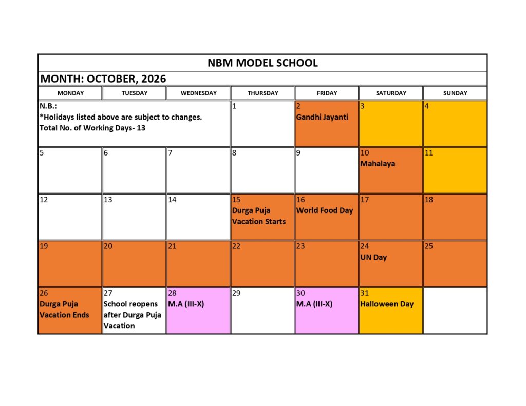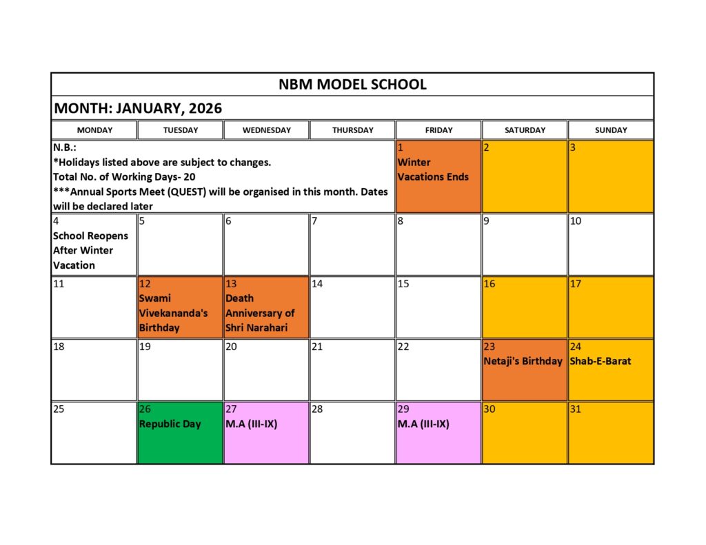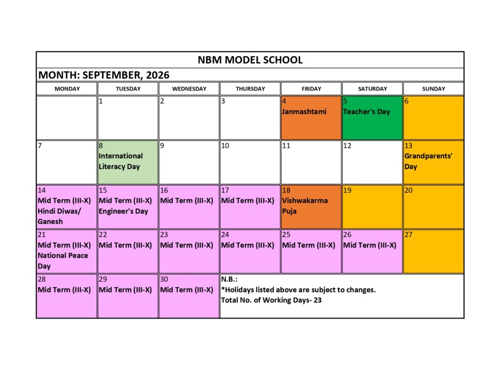 ACADEMIC CALENDAR FOR THE SESSION- 2026-2027