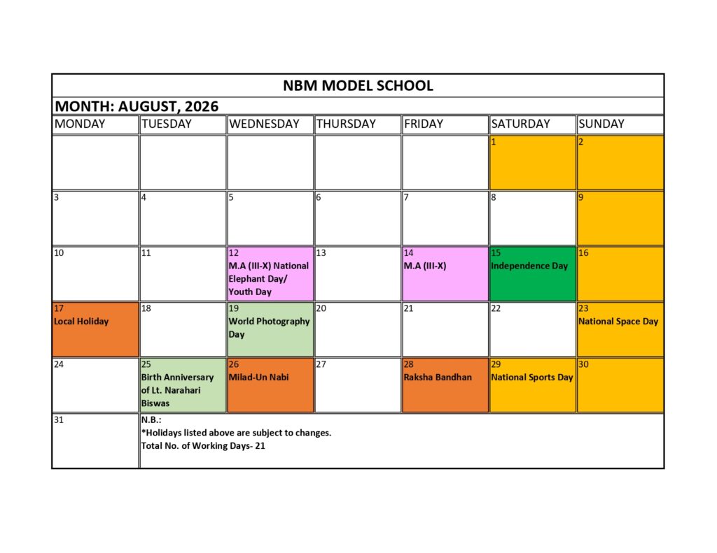 • School Holiday on account of Raksha Bandhan and Local Festival.