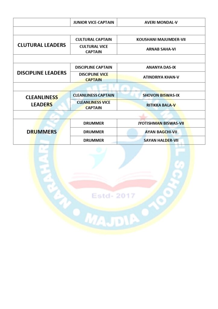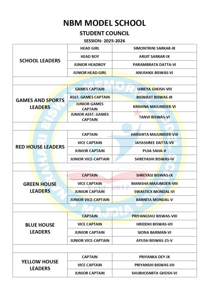 The school provides ample opportunities for chiseling leadership qualities among students by selecting student representatives each year. The student council comprises of a Head Boy & a Head Girl from the senior most class. Captains, Prefects and Vice Captains from all levels and in each house to assist in the smooth functioning of the school. The council is administered an oath in the Investiture Ceremony which is conducted at the beginning of each academic session. Each council member is given a badge which he/she is required to wear through that academic year.